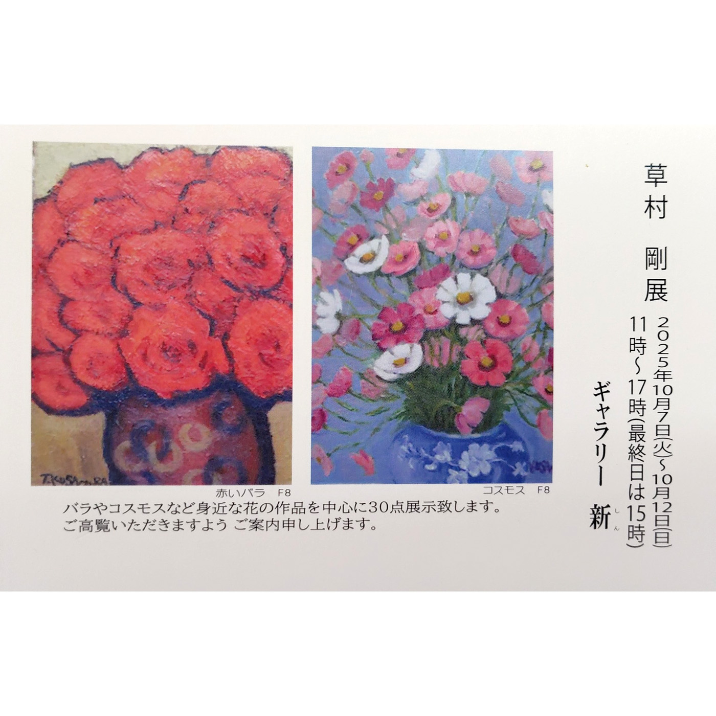連盟会員、草村剛さんの個展です。バラやコスモスなど身近な花の作品中心に、30点ほどを展示します。
