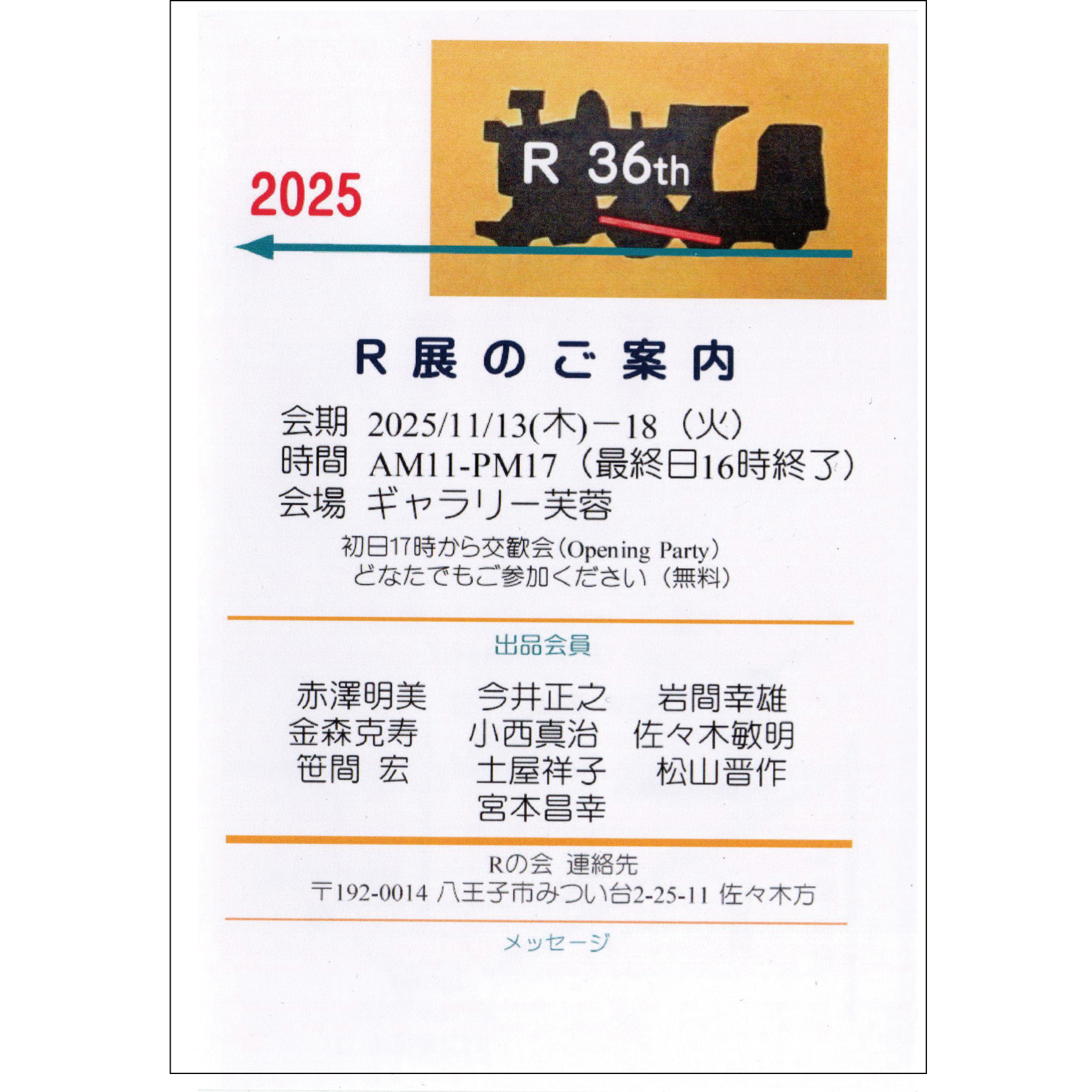 7名の連盟会員が出品されます。楽しかった19歳の頃の思い出を共有する仲間たちの展覧会です。